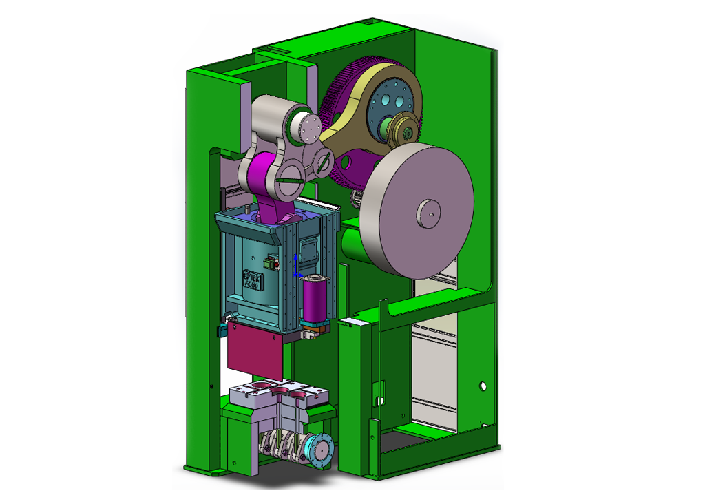 為保障產(chǎn)品高精度,設(shè)備采用高剛性強力一體框架設(shè)計,同時在負荷傳達部搭配高剛性強力機架,雙重剛性保障下,加壓過程中機架伸長量被極大抑制,有效避免了因結(jié)構(gòu)形變導(dǎo)致的加工偏差,顯著提升產(chǎn)品尺寸精度;更值得關(guān)注的是,驅(qū)動部與負荷傳達部分離的設(shè)計,排除了加工時負荷沖擊對驅(qū)動系統(tǒng)的惡劣影響,減少設(shè)備內(nèi)部部件損耗,既延長了整機使用壽命,也為長期穩(wěn)定加工提供了基礎(chǔ),同時還能大幅度降低模具因沖擊和形變產(chǎn)生的損耗,延長模具更換周期。